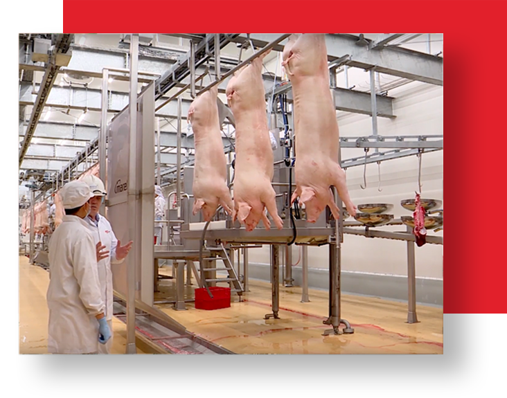 Closed, Hogh-tech slaughtering, packaging and transportation process: